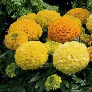 Tagetes erecta nana KÕRGE PEIULILL Suured 6-8 cm sidrunikollased täidiskorvikud lõhnavad tugevalt. Kompaktsel madalal 20 cm taimel on umbes 8-10 õit, mis õitsevad juulist külmadeni. |