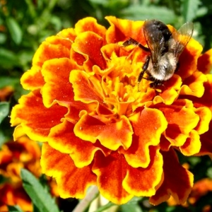 Tagetes erecta plena KÕRGE PEIULILL 20 cm taimel on suured oranžid tugeva lõhnaga tihedalt täidetud korvikud. Õitseb juulist öökülmadeni. |