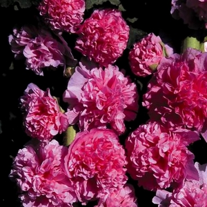 Alcea rosea Säravroosad suured täidisõied tipmises õisikus 1,5-2 meetrisel taimel. Annab isekülvi. |