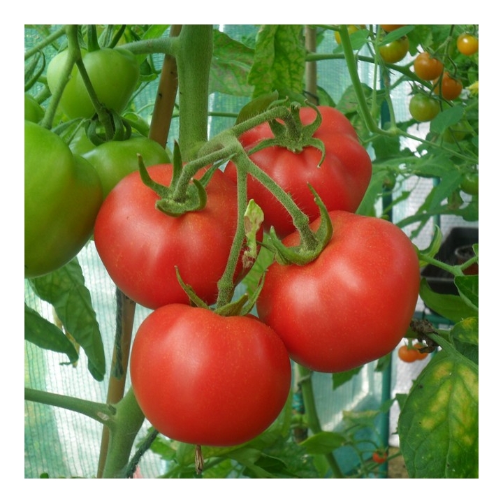 Väga varane Jaapani determinantne hübriid, sobib kasvatamiseks nii kasvuhoonetes kui avamaal, Sort resistentne haigustele F2, V, TYLCV. Viljad on ümarad, suured, kaaluga 250-300 gr ja kasvavad kobarates. Säilivad pikka aega, säilitades nii kena välimuse kui ka head maitseomadused.